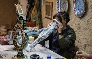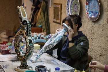 Villaggio sul fiume, famoso per la ceramica artigianale. Visitiamo una fabbrica di ceramica e assistiamo al processo di lavorazione e decorazione a mano, tramandato per secoli di generazione in generazione.