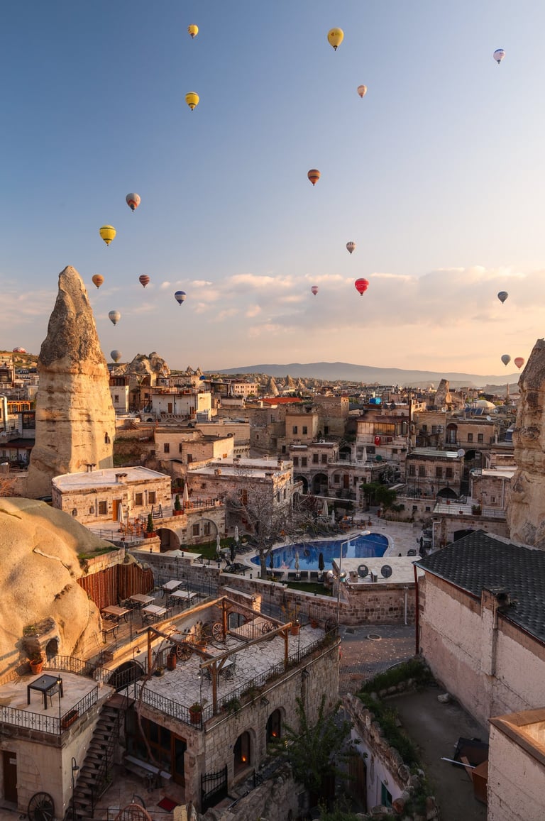 Il villaggio di Göreme è ormai diventato sinonimo di esperienza unica: salire su una mongolfiera e volare sopra le valli. La più famosa e ambita resta la valle di Göreme, tra i camini delle fate ma negli ultimi anni questa attività ha preso piede anche in altre valli, come Soganli, Cat e Ihlara.