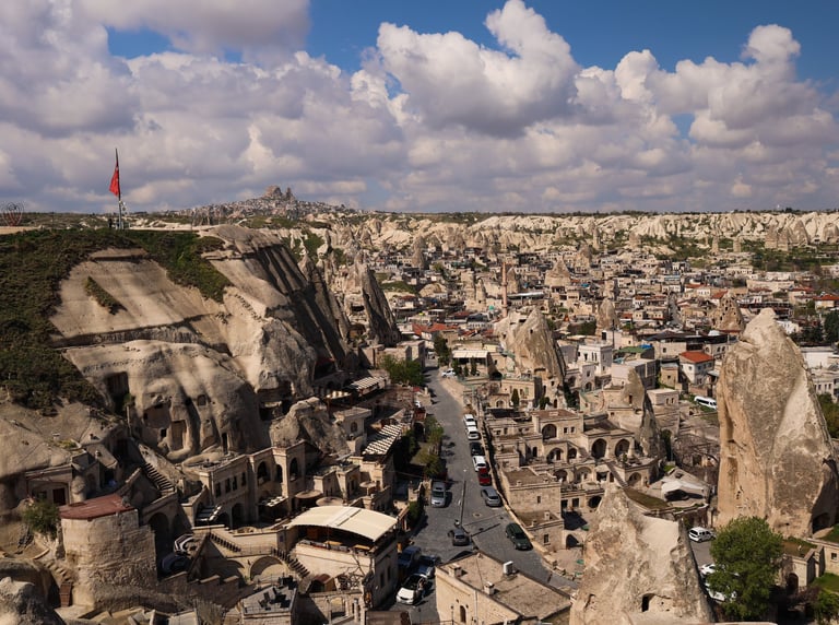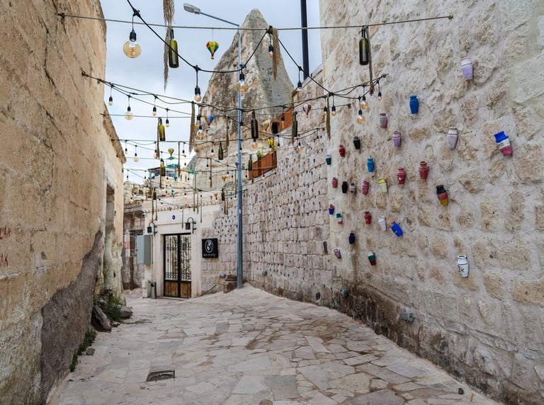 Dopo esserci sistemati nel nostro alloggio, con camere scavate nella roccia e vista pazzesca, dedichiamo la giornata tra i vicoli di Göreme. Questo villaggio dell'Anatolia centrale, incastonato tra formazioni rocciose surreali chiamate camini della fate, costituisce il cuore pulsante della Cappadocia, punto di partenza ideale per esplorare le meraviglie storiche e culturali della regione. Nonostante la sua popolarità, ha saputo mantenere un'anima autentica. Le stradine sono piene di botteghe artigiane, caffè panoramici dove fermarsi e assaporare il tè turco e ristoranti tradizionali su terrazze o all'interno di grotte.