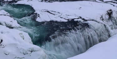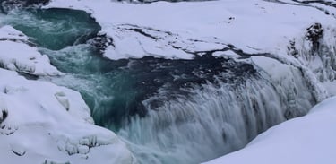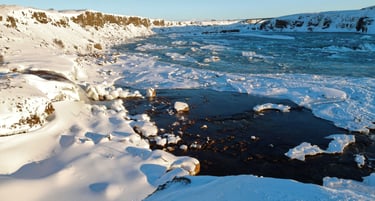 Chiudiamo il cerchio dorato con l'imponente cascate Gullfoss, percorrendo un sentiero che permette di ammirare dall'alto la possenza delle sue acque.