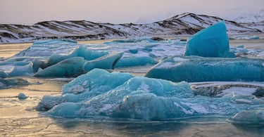 Il paesaggio inizia a cambiare e all'orizzonte compaiono i primi ghiacciai e lagune glaciali: Fjallsàrlòn e la più grande Jökulsárlón con gli icebergs che dal ghiaccio vengono portati fino alla vicina Diamond Beach.