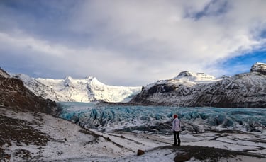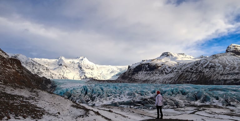 Procedendo sulla via del ritorno, ci fermiamo per un breve hiking fino ai piedi dello Svìnafellsjökull Glacier, con le sue stupende conformazioni blu.