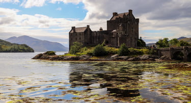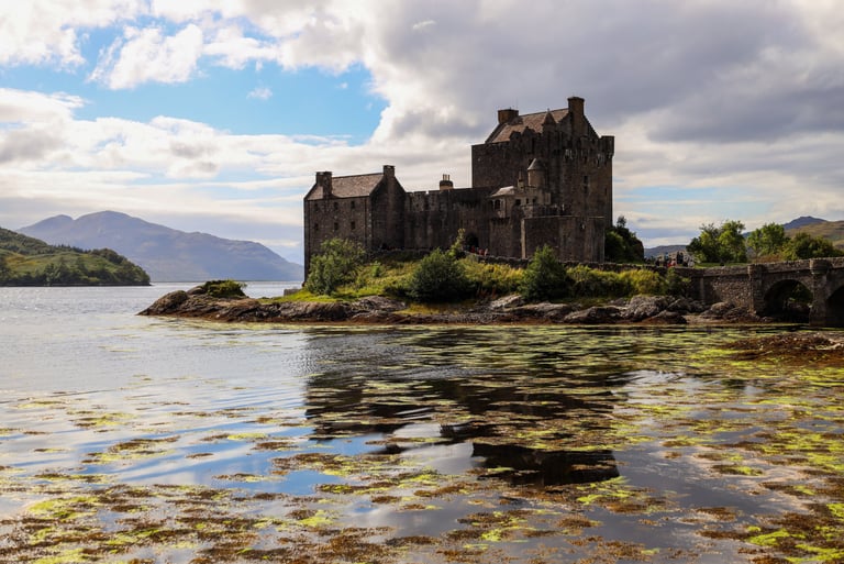 Facciamo ritorno a Fort William dove, dopo una breve tappa per ammirare il relitto abbandonato dell'omonima nave, sulle sponde del lago di Linnhe, percorriamo i km che ci separano all'isola di Eilean Donan. Qui sorge il castello più famoso della Scozia, nelle vicinanze del villaggio di Dornie. Durante la prima ribellione giacobita Eilean Donan Castle venne parzialmente distrutto dai bombardamenti, cadendo così in rovina e abbandonato per circa 200 anni, fino a quando il sottotenente colonnello John MacRae-Gilstrap acquistò l’isola nel 1911 e diede inizio a degli estenuanti lavori per riportare il castello al suo antico splendore. Il castello riaprì così le porte ai visitatori nel 1955.