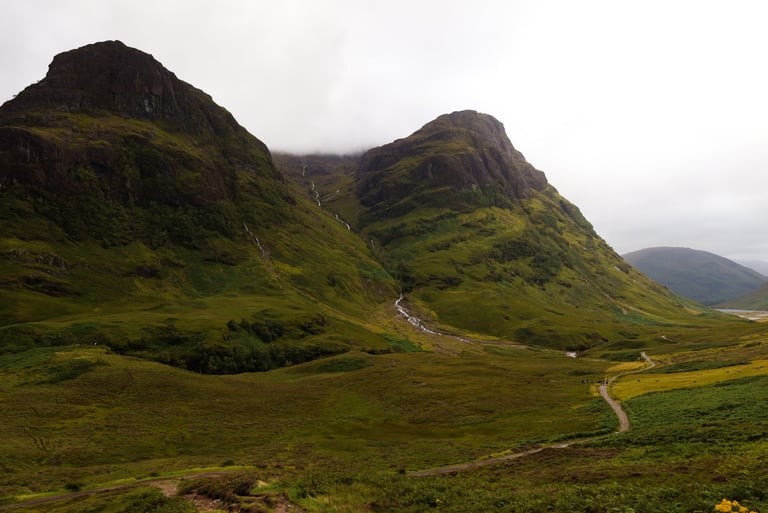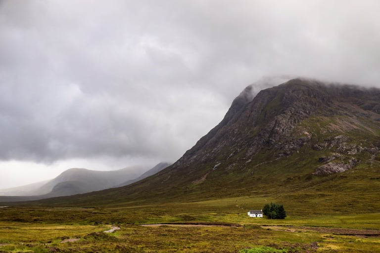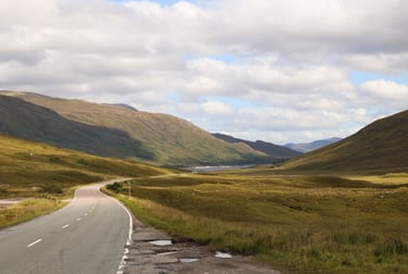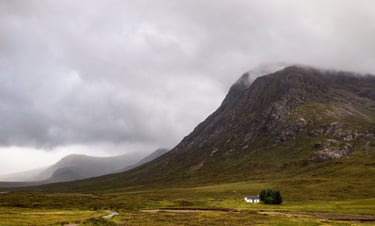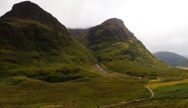 Percorriamo lo scenografico passo di Glen Coe, la vallata di origine vulcanica che si distingue per le sue verdi valli e le ricche foreste, modellata dai processi glaciali. Uno dei luoghi più spettacolari delle Highlands, con tanti spot fotografici lungo il percorso. A dominare il passo è la montagna Bidean Nam Bian, più conosciuta come "The Three Sisters", con la sua altitudine massima di 1150 metri, dimora dei guardiani della Valle.