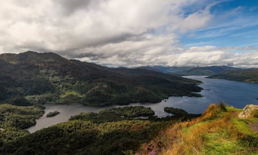 La Scozia ci accoglie con questa vasta area naturale dominata da montagne, canyon, fiumi e laghi, tra cui il principale Loch Lomond situato nella parte centrale del parco. Percorrendo la strada principale costeggiamo una miriade di altri laghi minori, ognuno diverso dall’altro, tra cui Loch Rusky, Loch Achray e Loch Ard per citarne solo alcuni. Qui dedichiamo mezza giornata di trekking fino alla cima della piccola montagna: il Ben A’an, da cui si può godere di una spettacolare vista a 360° sul Loch Katrine e la vetta del Ben Venue.