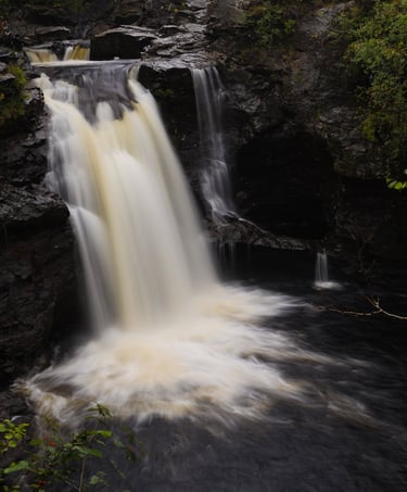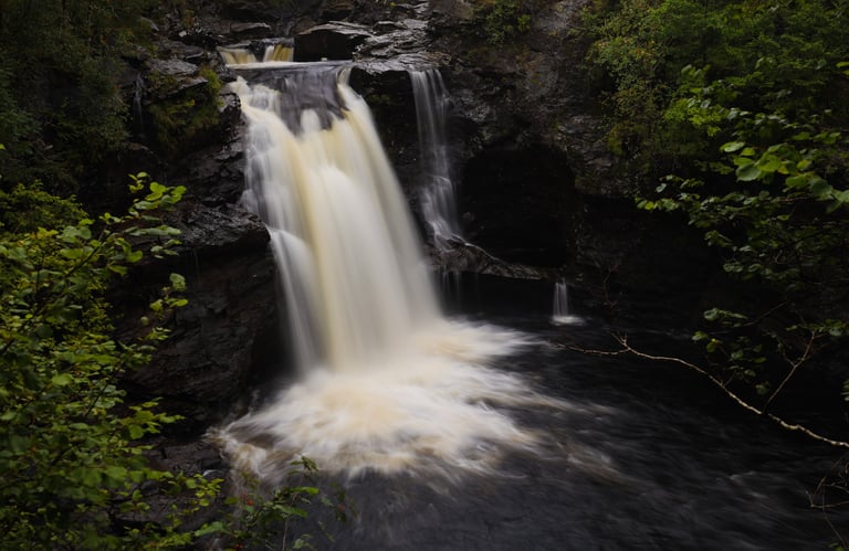 Lungo la A82, ci fermiamo lungo il Ponte da cui è possibile ammirare la maestosa Falls of Orchy, che percorre l'omonimo canyon le cui rocce sono state erose dalla forza dell'acqua, creando cascate e canali
