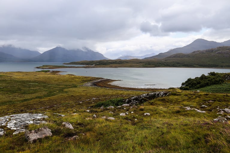 Lasciata l'Isola di Skye, percorriamo la strada costiera che attraversa i pittoreschi villaggi di pescatori di Shieldaig e Torridon, che sorgono all'ombra delle drammatiche e spettacolari vette delle Torridon Hills, nelle Highlands nordoccidentali. Da qui parte la suggestiva strada A896 che attraversa il Glen Torridon, fino ad arrivare al villaggio di Kinlochewe, costeggiando paesaggi solitari e selvaggi, tra laghi e montagne.